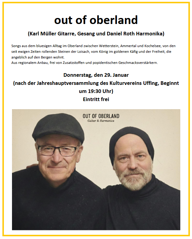 Im Anschluss an die Jahreshauptversammlung: Livemusik mit dem Duo "out of oberland"